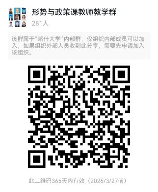 1.所有“形势与政策”课程任课教师在4月3日前必须通过二维码加入“形势与政策课教师教学群”。