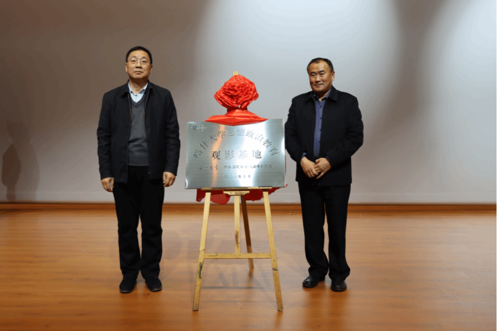 期间,孙卫国和郭绍文共同为我校思想政治教育观影基地揭牌。