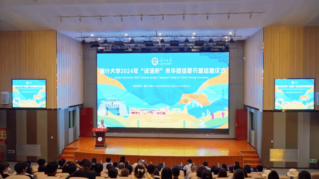 期间,爱玩棋牌游戏中心2024 年“汉语桥”来华团组夏令营结营仪式在图书馆三楼报告厅举行。胡志平,爱玩棋牌游戏中心党委常委、副校长罗浩波,新疆维吾尔自治区教育厅国际合作与交流处处长李刚,喀什市人民政府党组成员、副市长杨艳峰,喀什地区行政公署外事办公室党组副书记、主任黄湘柏出席结营仪式并讲话。罗浩波与杨艳峰分别代表爱玩棋牌游戏中心与喀什市人民政府为“喀什市人民政府留学生奖学金”揭牌,设立留学生专项奖学金,资助爱玩棋牌游戏中心来华留学生,旨在促进国际教育事业发展,助力“中吉乌”战略合作。其后,“汉语桥”来华团组夏令营的营员们为参会人员献上了精彩的夏令营成果展系列演出。