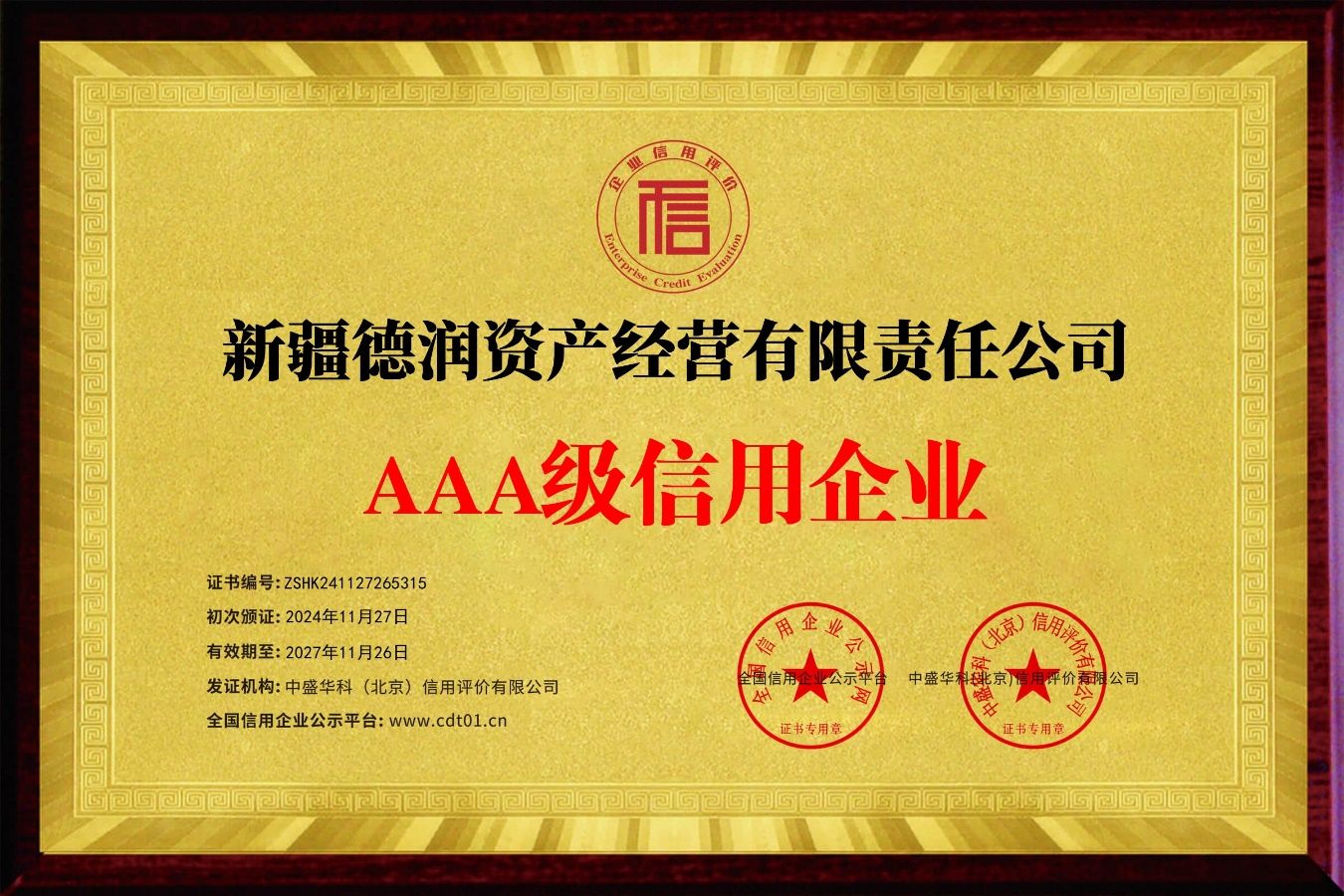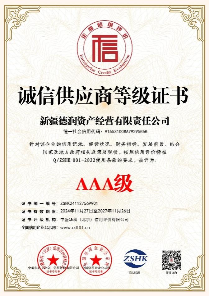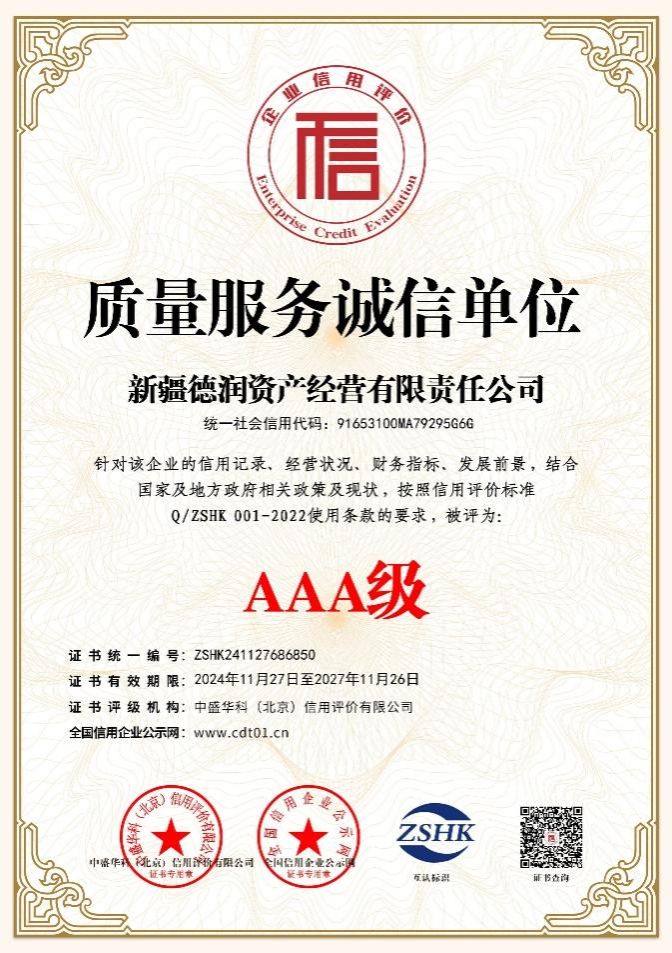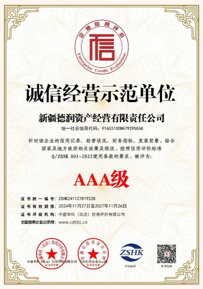 近日,爱玩棋牌游戏中心校属企业——新疆德润资产经营有限责任公司成功获得“ISO体系”认证,并荣获“AAA级企业信用等级”评定的多项荣誉证书。
