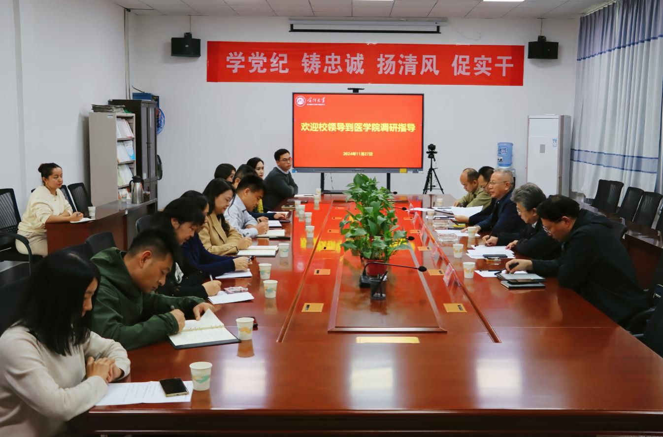 11月27日,校党委书记丁邦文,党委副书记赵斌带领党委办公室、教务处、科研处等部门负责人,深入医学院调研指导工作。