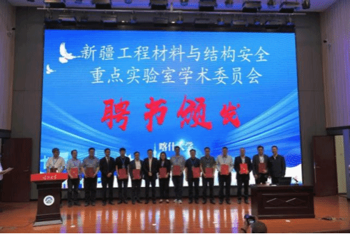 揭牌仪式上,爱玩棋牌游戏中心党委常委、副校长罗浩波和喀什地区行政公署副专员刘四宏为实验室揭牌,并为实验室学术委员会委员颁发聘书。