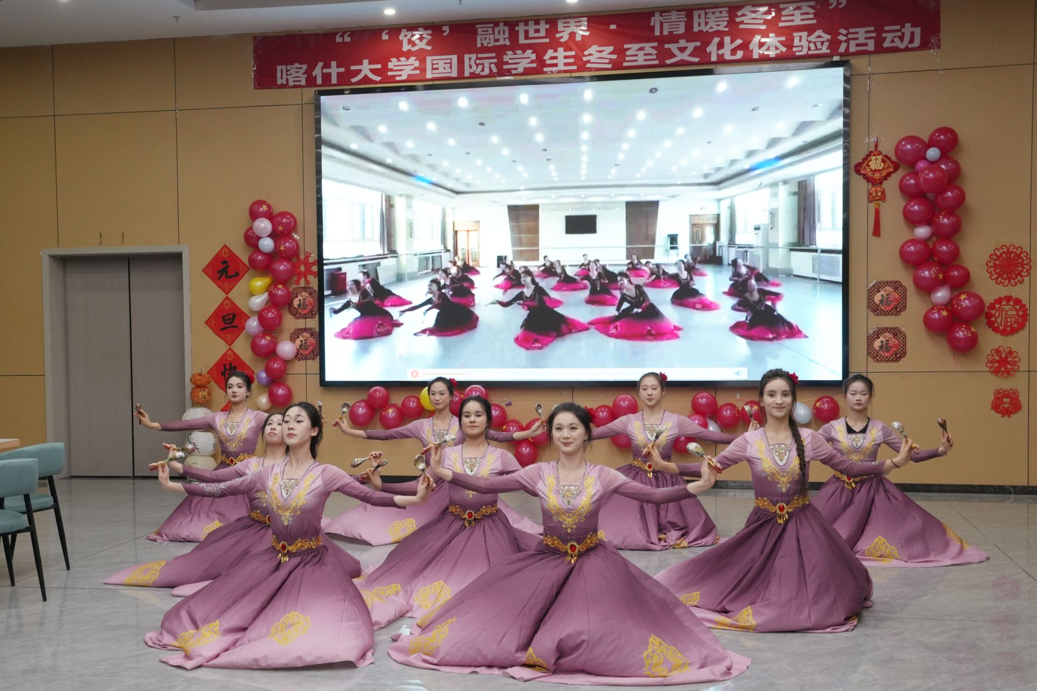 为弘扬中华优秀传统文化、丰富学生日常生活,12月17日,我校在学术交流中心举办“饺”融世界·情暖冬至国际学生冬至文化体验活动。校党委书记丁邦文,校党委副书记、校长帕力旦·吐尔逊,其他在家校领导,各相关单位负责人与200余名中外师生齐聚一堂,共迎冬至,共叙情谊。