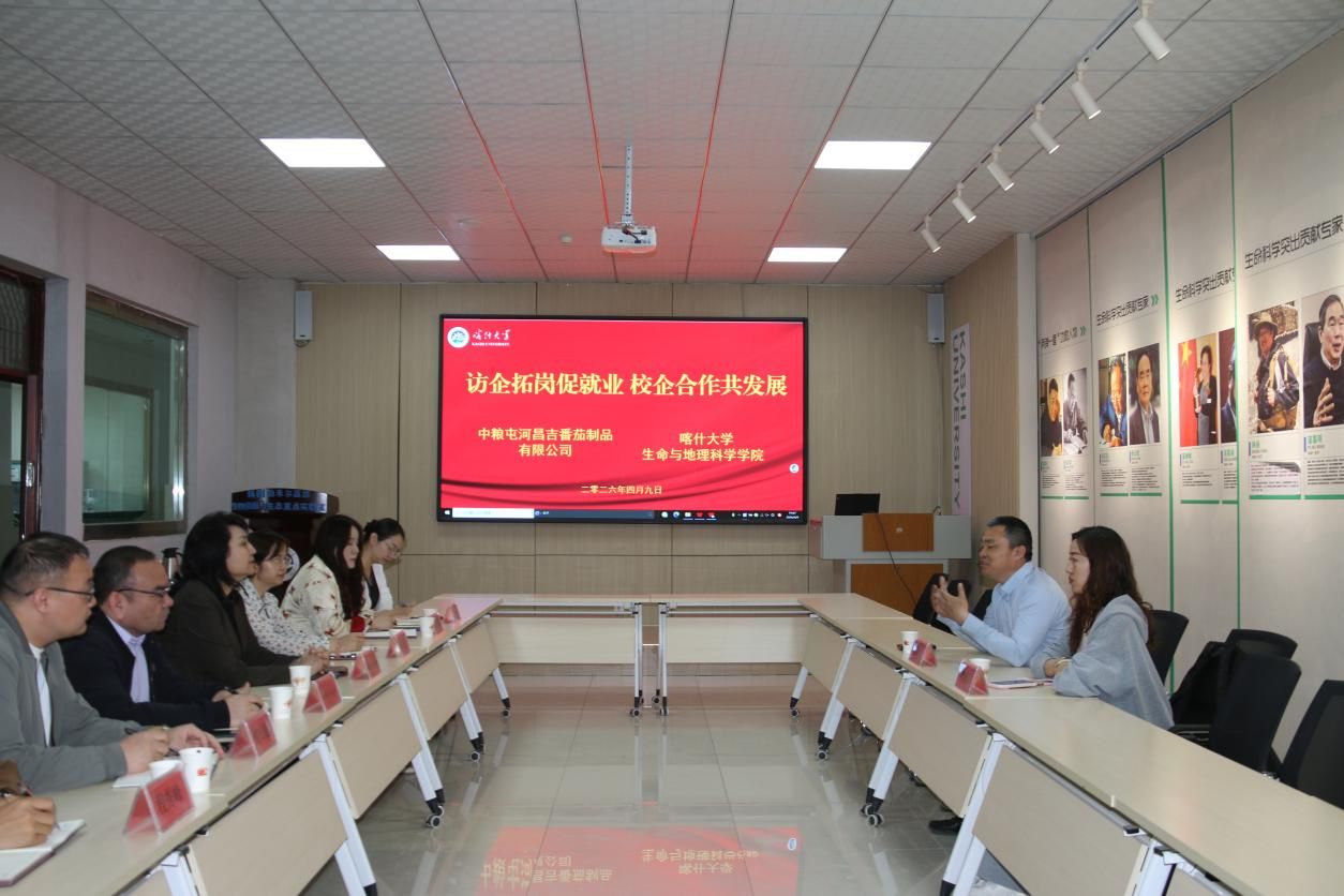 4月9日,爱玩棋牌游戏中心与中粮屯河昌吉番茄制品有限公司举行“访企拓岗促就业”座谈交流会。校党委副书记、校长帕力旦?吐尔逊出席会议并讲话,中粮屯河昌吉番茄制品有限公司总经理李心齐一行到校交流,生命与地理科学学院负责人及食品系师生代表参加活动。